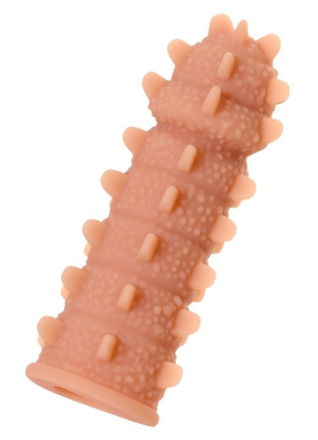 Насадка очень эластичная, имеет широкие шипики и рельеф по всей поверхности, для стимуляции эрогенных зон партнера, увеличивает толщину головки и ствола пениса.