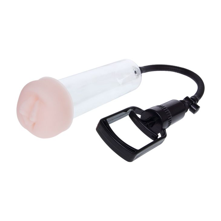 Вакуумная помпа с вибрацией выполнена из прозрачного материала. Воздух откачивается при помощи вакуумного шланга удобным механизмом откачки. Давление в колбе сбрасывается при помощи кнопки, расположенной на верхней части самой колбы. Механизм вибрации крепится к помпе с помощью эластичного материала с кармашком для виброяичка, которое управляется выносным пультом. В набор входит также насадка для помпы в виде вагины, изготовленная из TPE. Мягкая, реалистичная. Диаметр отверстия насадки в не растянутом состоянии - 2,7 см.