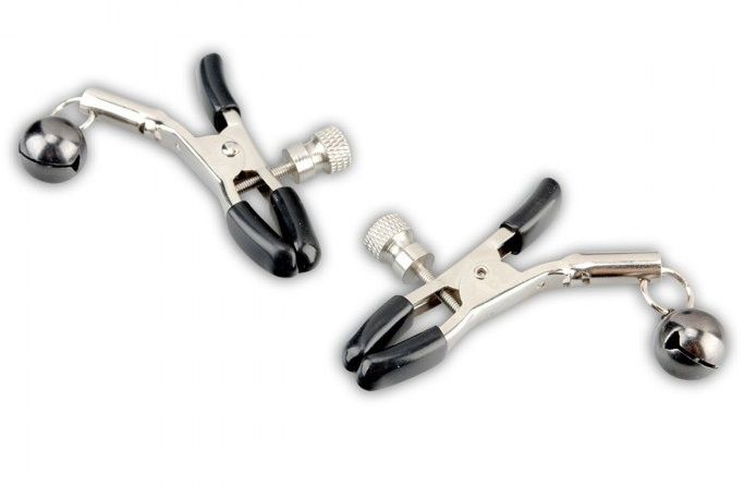 Клипсы на соски с возможностью регулировать силу зажима. Зажимы покрыты резиновыми прокладочками, чтобы не повредить нежную кожу сосков. На каждой клипсе висит по одному маленькому колокольчику. Клипсы очень удобны и просты в обращении.