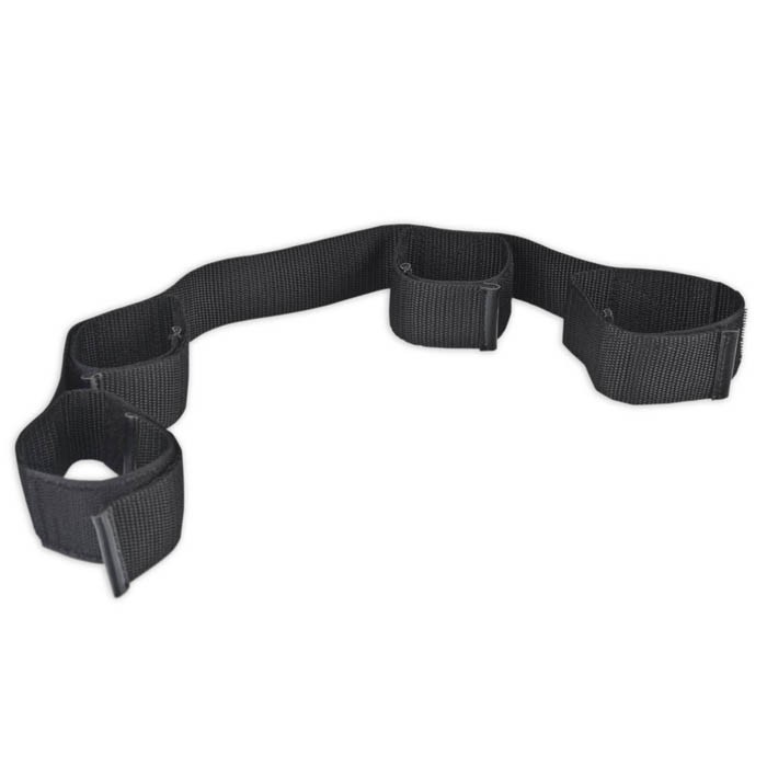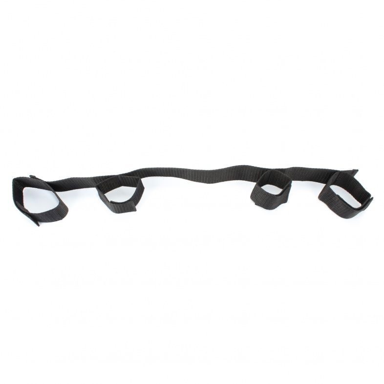 Фиксатор черного цвета, изготовленный из плотной черной корсажной ленты. По всей длине расположены фиксаторы для рук/запястий (2 шт) и лодыжек (2 шт) Их размер легко регулируется при помощи застежек-липучек. Ширина - 5 см.