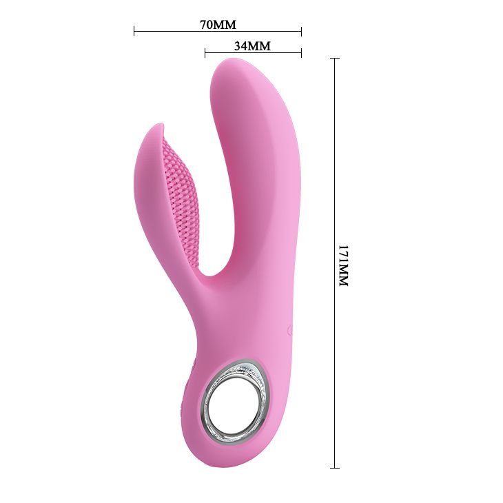 Оригинальная форма интимного аксессуара способствует комфортному введению. Специальный отросток-щеточка будет стимулировать клитор. Ручка-кольцо с металлической окантовкой делает достаточно удобной эксплуатацию изделия. Добавят остроты ощущениям 7 режимов вибрации с 5 вариантами скоростей, работа которых регулируется с помощью кнопок, расположенных на корпусе.